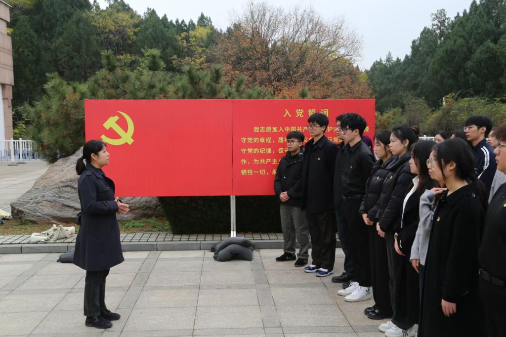 在纪念馆前,党员、发展对象代表以“铭记历史 坚定初心”为主题发表感言。张峻彬说,济南战役的历史让他深刻感受到今天幸福生活的来之不易,今后要以革命先烈为榜样,坚定理想信念,努力成为一名合格的共产党员。奚瑞琪表示,我们不能忘却历史,应传承先烈精神,在学习和生活中坚定信念,不畏困难,积极进取。王继霖认为,革命先烈的牺牲换来了今天的幸福生活,当代青年应肩负起历史使命,努力为祖国建设贡献智慧与力量。刘梦晴在发言中呼吁同学们要将红色精神融入日常生活,以此激励自我不断进步,努力成长为一名无愧于时代的共产党员。