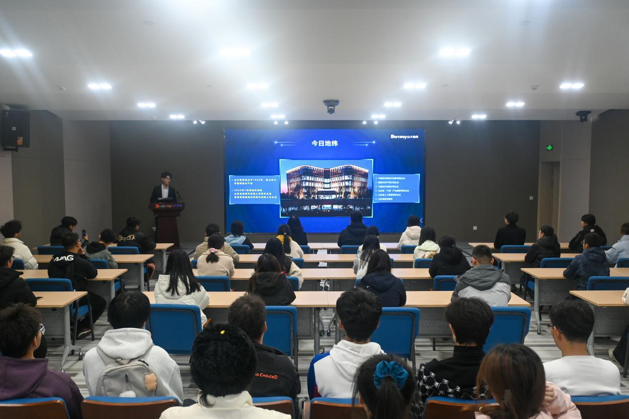 参观之后,同学们移步至会议室,地纬人力资源部门负责人王文强向同学们介绍了公司历史发展脉络、企业文化建设、目前的主营业务领域,以及山财校友在地纬的发展现状。王文强强调了公司对大数据专业人才的重视和期待,并为同学们提供了职业发展规划方面的指导。他希望同学们能够在大学期间注重综合素质的提升,为未来的职业发展做好准备。