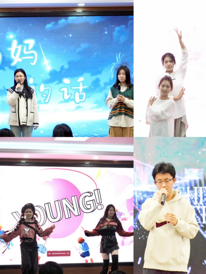 比赛休场时,院艺术团舞蹈部的《奔跑的青春》《天若有情》、音韵社团的《裹着心的光》以及心服部的《妈妈的话》,都为观众带来视听盛宴。