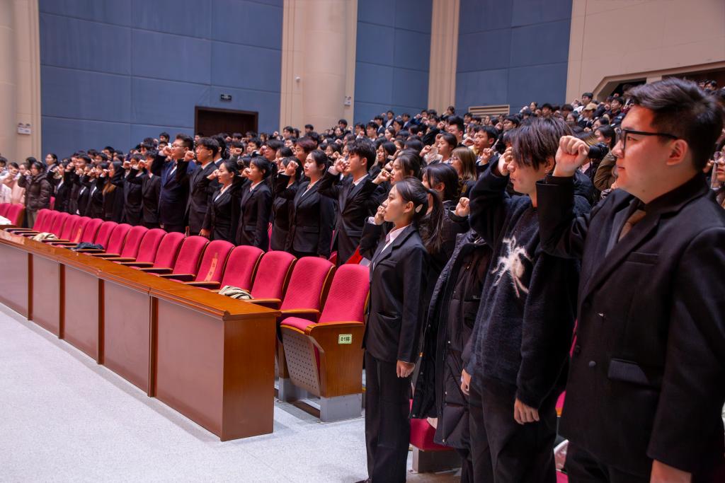 最后,校团委主席团成员霍玮婷带领第十四届学生组织全体成员进行庄严宣誓。