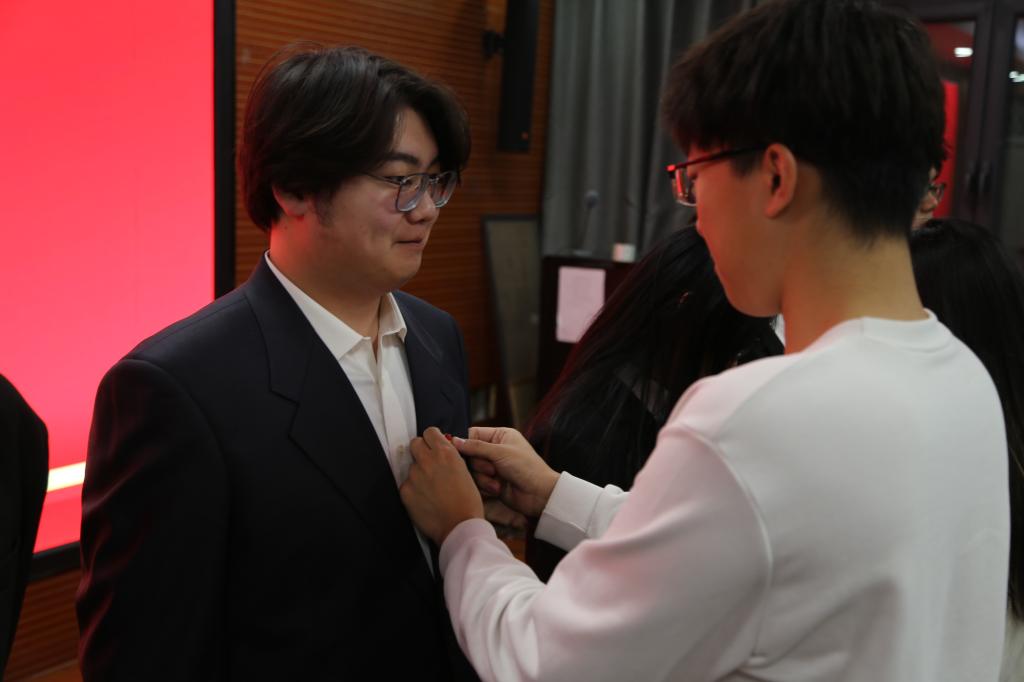 入团仪式在庄严的国歌声中拉开序幕。全体师生肃立,奏唱中华人民共和国国歌。仪式中,何丽宣读了此次培养考察合格的19名新发展团员名单,并与学院学生会主席团成员共同为新团员佩戴了团徽。