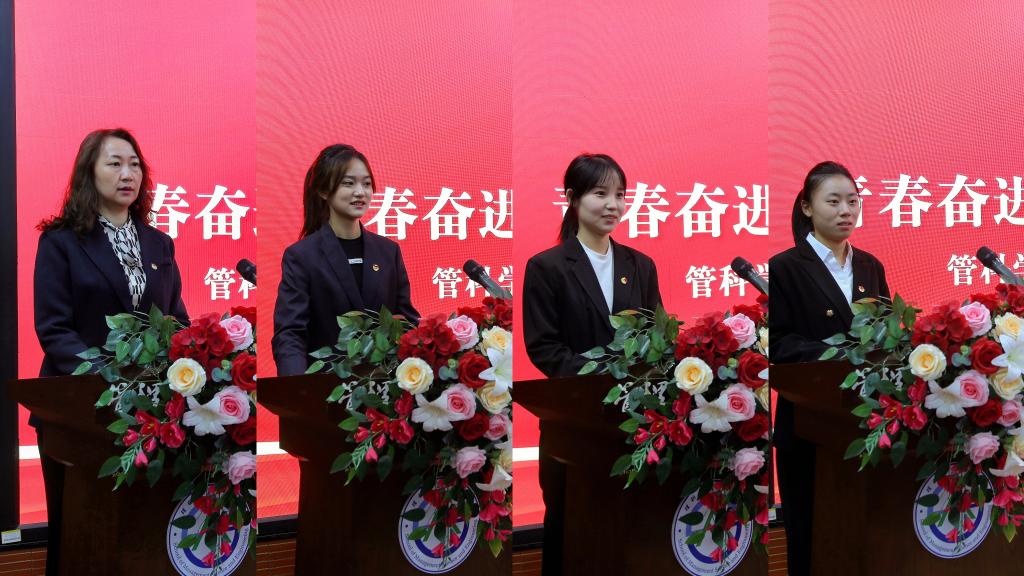 大数据管理与应用专业2301班张婷婷、大数据管理与应用专业2302班徐畅分别作为新老团员代表发言,她们一致表态将务实奋进、勤勉向上,对标团员要求,力求成为新时代优秀团员,担当青春使命。