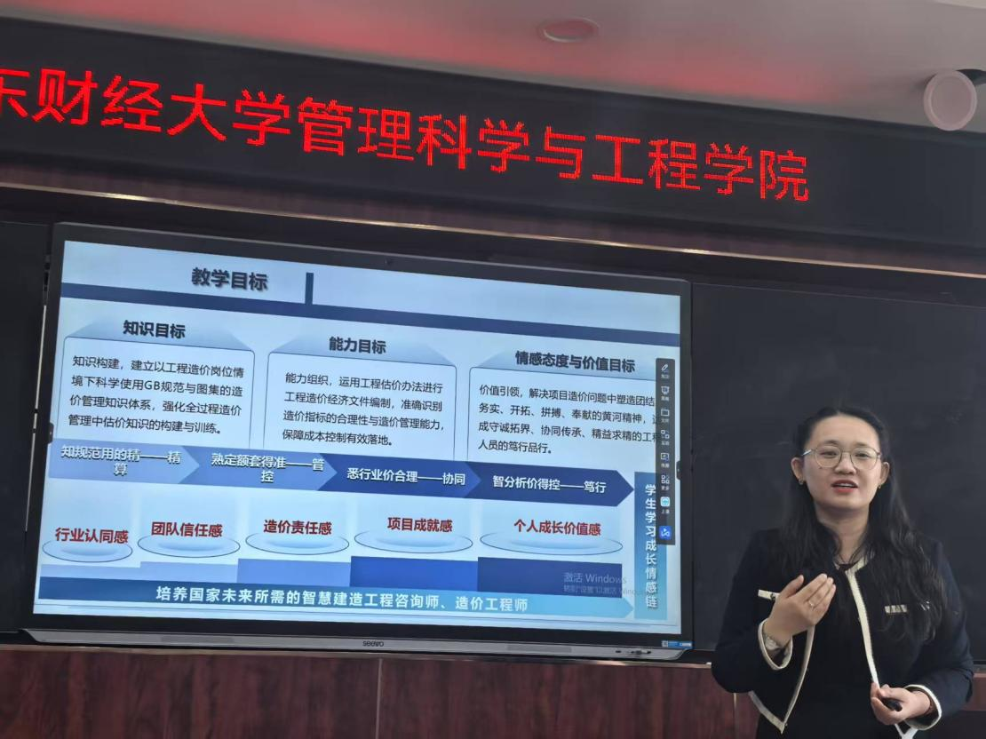 李雅琦副教授具有丰富的一线教学经验和教学改革实践成果,其主讲的《工程造价》课程以“培养国家未来智慧建造的工程咨询师、造价工程师”为导向,荣获山东省第十一届青年教师教学比赛一等奖、第六届全国高校混合式教学设计创新大赛全国三等奖、全国新工科联盟教师教学基本功大赛全国一等奖等多项荣誉,
