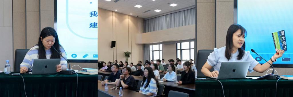 参观结束后,冯婧主持了“算力报国书香铸魂”主题分享论坛。论坛上,我校2012级校友、神威蓝光II集群的管理员陶冉冉向师生展示了国产神威超级计算机的建设与应用。冯婧通过对《沃尔夫条约》、谷歌与华为之争等案例的演绎激发了同学们“算力报国”的昂扬志气。“我们为什么不得不主导第四次产业革命”“算力经济与马克思主义政治经济为什么最终将会殊途同归?”等问题更是将同学们引入了深度思考和讨论。“这场活动如同一场思维与视野的双重革新,我愿以更积极的姿态,投身于这个充满无限可能的算力时代。”“今天的活动让我意识在书本上学到的一个个名词以及联系他们的逻辑,他们对于我来说从此不再只是高深的名词和冰冷的数据,而是实实在在读书奋进的动力。”徐圣杰、朱星宇等2024级学生的发言不仅展现出青年学生的报国志向,更是给出了如何去做的行动宣言。“等到我们工作的时候,抽象的算法理论将大量转化为服务政务、工业、民生的实际应用,因此学好技术服务于实体经济应该列入我们的职业规划。”“我们不仅要致力于规模、前沿,还要考虑共享、普惠”,2023级学生何叶、王乐宸的思考触角更是深入到对数字经济与实体经济深度融合的思辨。活动在同学们喊出的“代码有国界、算力即国力”的口号中得到了进一步升华。