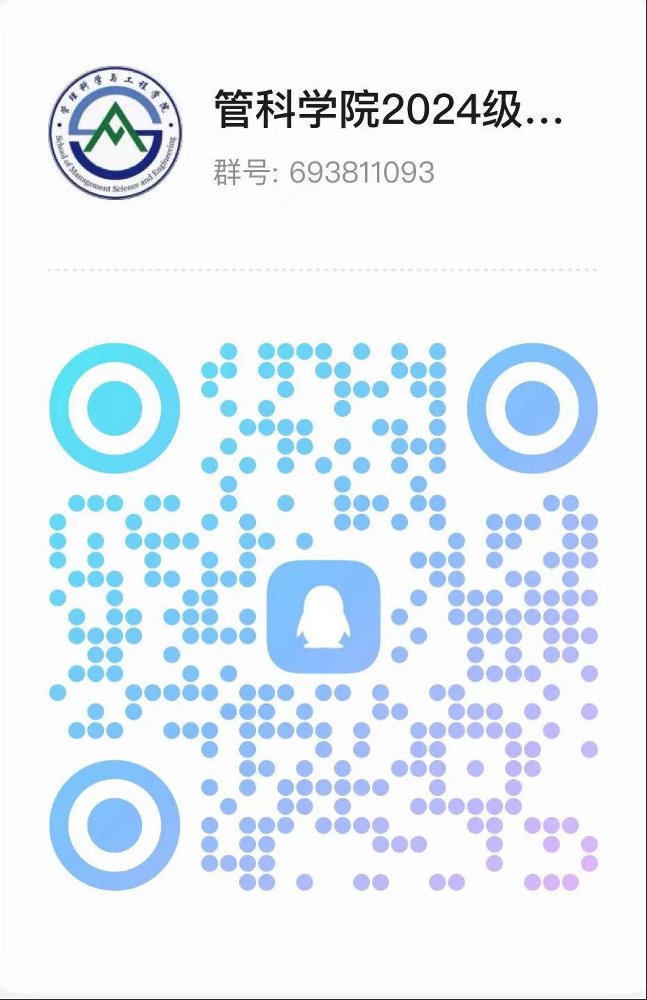 为更好协助新生完成入校报到相关事宜,保障新生顺利入校,现建立管理科学与工程学院2024级官方迎新群,请各2024级新生及时加入,以便做好开学准备。