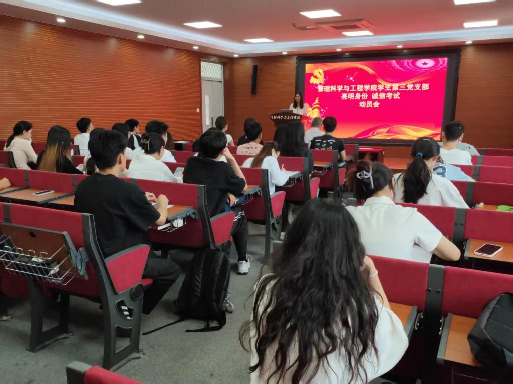6月12日,我院学生第三党支部召开了“亮明身份 诚信考试”动员会。