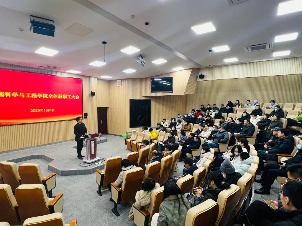 1月8日上午,我院在燕山校区召开全体教职工大会,传达学校年底工作会议精神并安排部署假期工作,院长刘位龙主持会议。