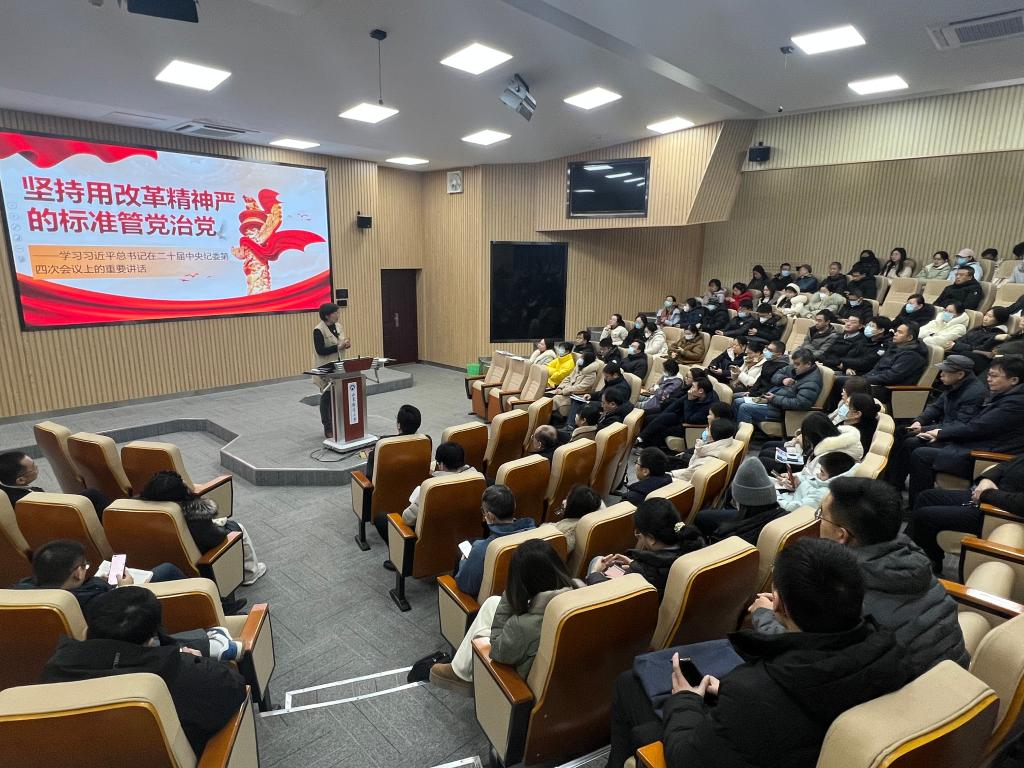 最后,院党委书记崔东峰带领全体教师学习了习近平总书记在二十届中央纪委四次全会上的重要讲话精神,进一步提升了教职工的政治素养和思想觉悟,并传达了学校绩效考核工作会议的精神。她对全体教职工过去一年的辛勤付出表示了衷心地感谢,鼓励大家在新的一年里继续发扬团结协作、锐意进取的精神,共同为学院的未来发展贡献力量。