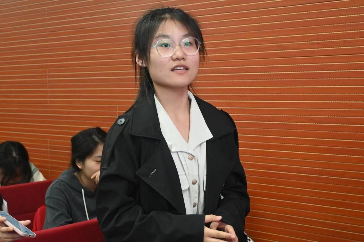 活动分为宣讲和研讨两个阶段。在宣讲阶段,来自信外2202奚瑞祺、大数据2201魏熙桐和电商2302刘琦睿三位同学就各自在两期读书活动中所读马克思《青年人在选择职业时的考虑》和毛泽东《七绝·改诗赠父亲》两首名篇,分享了自己在追寻伟人成长心路时发出的共鸣和在探寻伟人职业选择之路时获得的启发。更具有意义的是,在表达了这些共鸣和启发之后,他们结合各自专业背景,深入思考了自己的职业理想和发展路径,同时,也提出了诸如“什么是有意义的工作”“坚守和选择是否矛盾”等反映青年心声、戳中青年痛处的疑问。