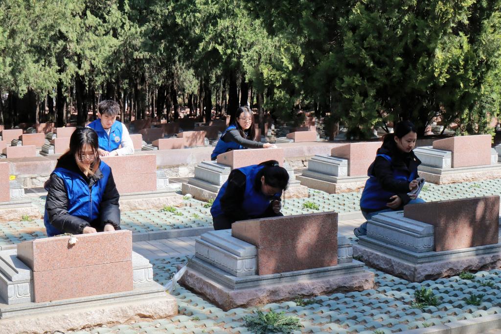 活动尾声,党员们换上管科院志愿服,手持毛巾轻拭烈士墓碑。春风轻拂,青年们躬身清扫的身影与镌刻着“人民英雄永垂不朽”的丰碑相映成辉。