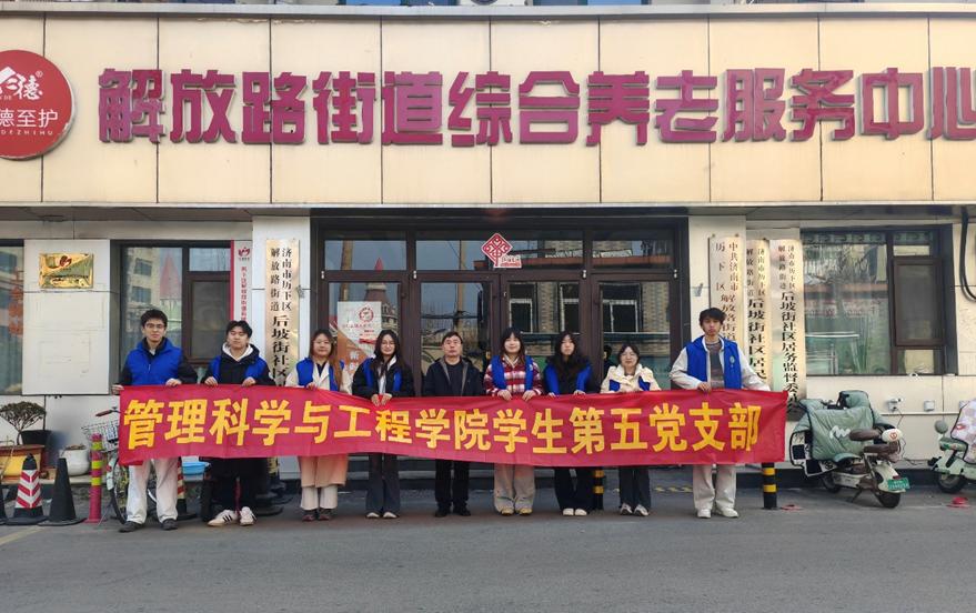 杳杳观春来逢时,雷锋精神传薪火。2025年3月9日,山东财经大学管理科学与工程学院学生第五党支部前往仁德至护解放路街道综合养老中心,组织了一场温馨的敬老志愿服务活动。